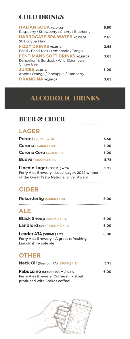 Highlights include expertly crafted beverages, like skilled barista-made coffee, complemented by refreshing ciders such as Rekorderlig for just £6.00. Sweet tooths will revel in the dessert options, from delightful mini doughnuts to the indulgent sticky toffee pudding, each priced affordably at around £6.50.